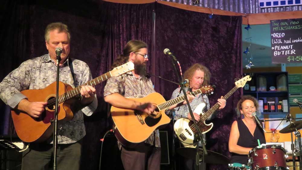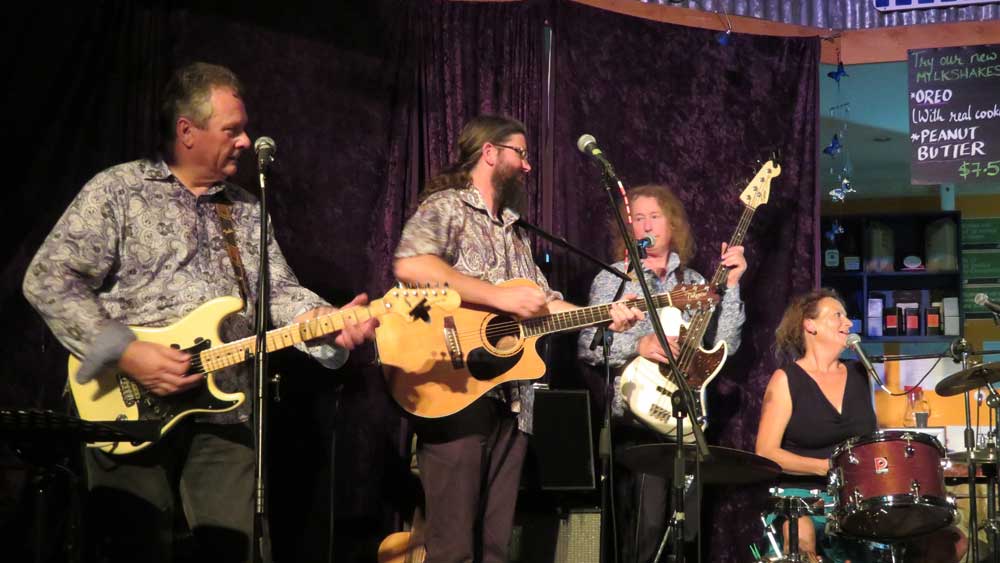 The Salty Hearts are Greg, Richard, Dave and Anje from the north end of the Kapiti Coast; they are a four-piece band playing a dynamic mix of interesting cover songs and a tasty selection of Greg’s originals. They are entertaining and upbeat.