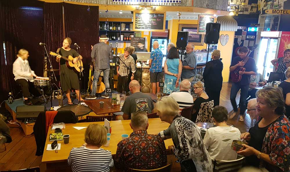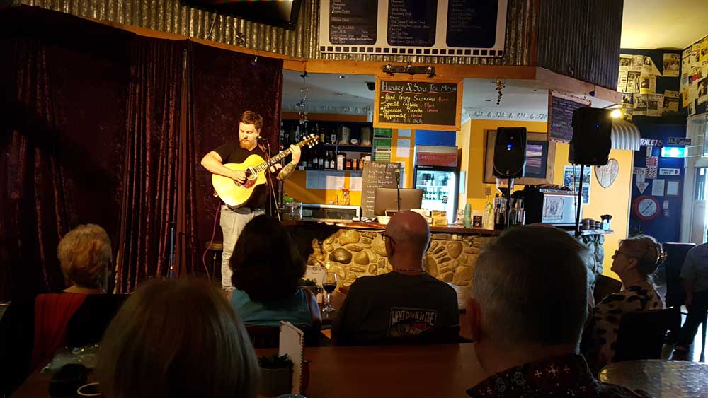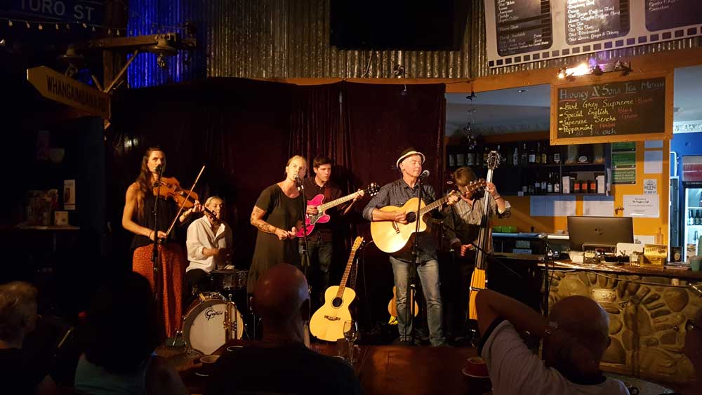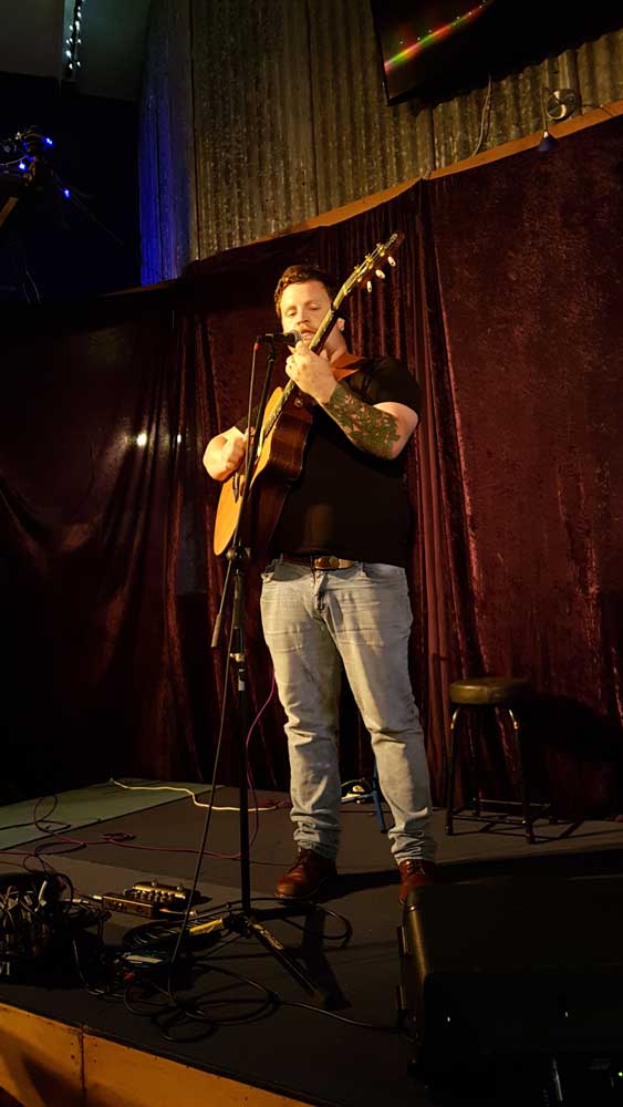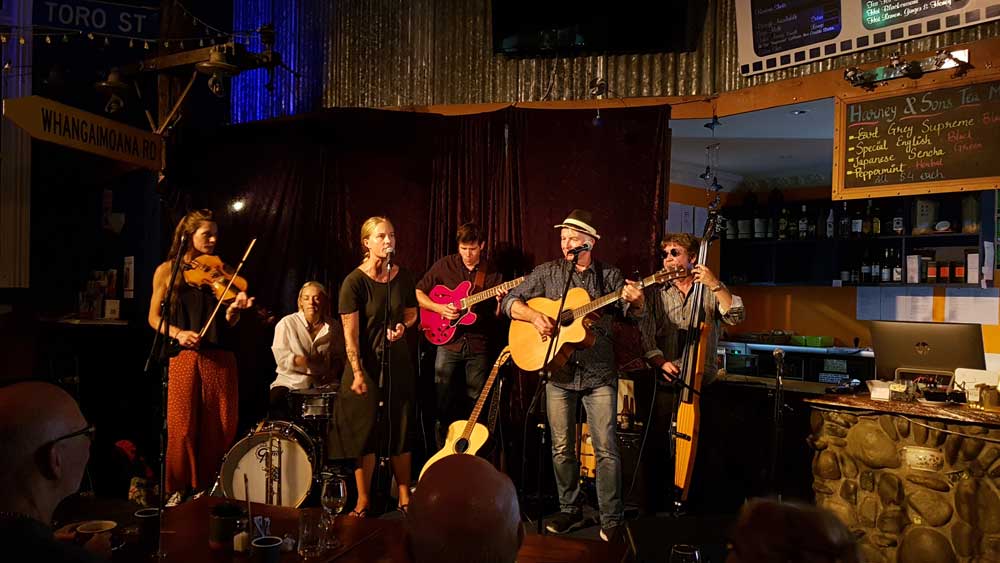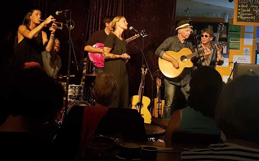Our next guest headliner is Paddy Burgin and the Wooden Box Band. They describe themselves as an unrelated family of musicians from all walks of life who enjoy writing and playing urban folk music around Wellington and environs beyond.