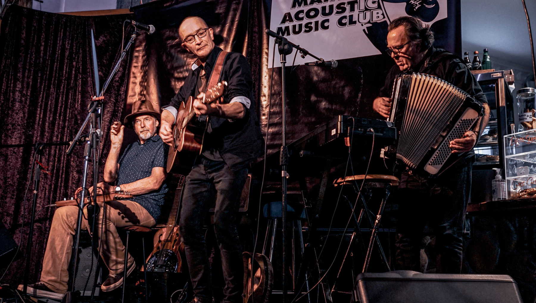Irishman Andrew Kerr (ex. Jacky Tar) and Alan Norman (The Warratahs, The Rag Poets) have been playing as a duo for many years. They have recently expanded to a trio and are joined by Paddy Burgin (The Wooden Box Band, The Zimmermans), and his magical guitars, on a more permanent basis.