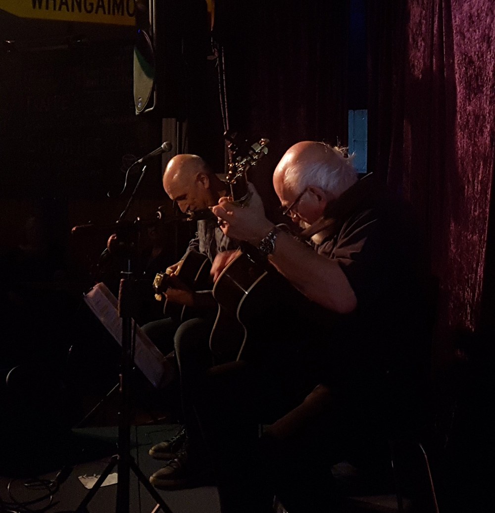 Chris has a classical piano background and loves acoustic guitar. He started in the mid 60s playing at the Chez Paree. George Barris has been in many of NZs top bands playing both guitar and bass. They have played music together over three decades and we enjoy the blend of their acoustic guitars. Chris and George performed at Mainly Acoustic a few years ago and look forward to bringing you their selection of music.